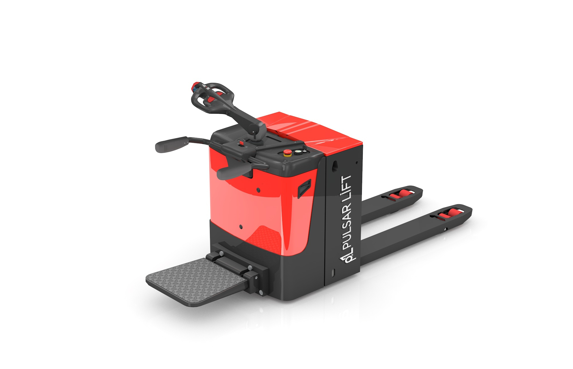 Akülü transpaletin kontrolü elektrikli kontrol kolu ile yapılır. Operatör elektrikli kontrol kolu ile akülü transpaletin sürüşünü kolaylıkla yapabilir.